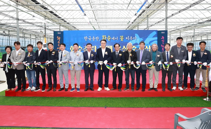 경과보고와 축사 이후 진행된 테이프 커팅식은 뜨거운 환호와 갈채 속에 진행됐으며, 전국 최대 규모로 신축한 화순춘란 재배 온실의 성공적인 출발을 알렸다.