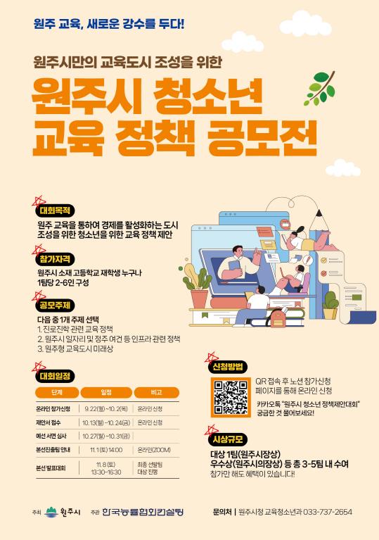 ![]() 원주시 청소년 교육 정책 공모전 안내문 |