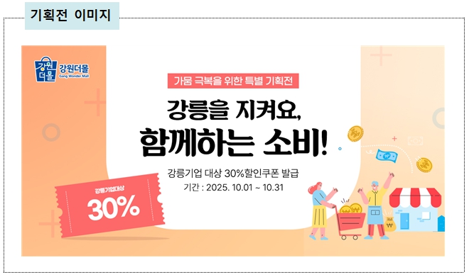 ![]() 강릉 지역 입점 기업 73개사 참여, 30% 할인쿠폰 이벤트 |