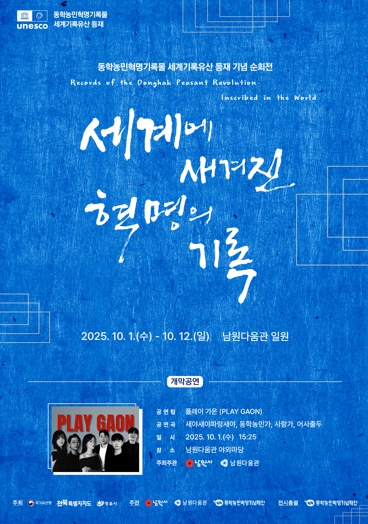 남원시 관계자는 “남원은 동학농민군이 치열한 저항을 벌였던 역사적 현장”이라며 “이번 전시를 통해 시민과 방문객들이 동학농민혁명기록물의 보편적 가치를 깊이 체감하길 바란다”고 전했다.