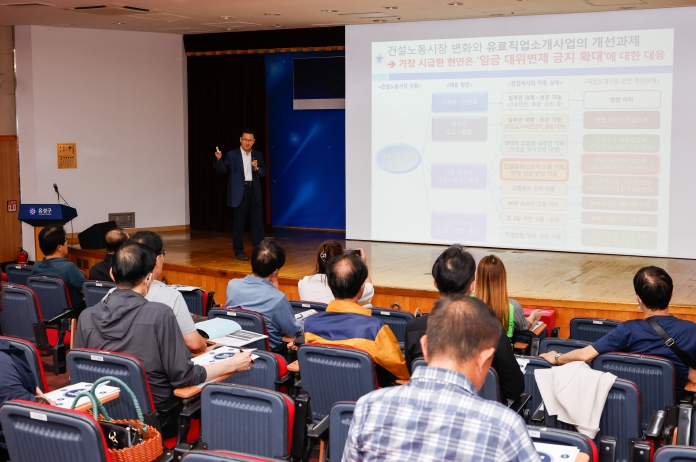 교육 내용은 ▲직업소개 제도·관련 법령 ▲직업소개 실무·상담 윤리 ▲개인정보보호·민원 예방 사례 ▲노무·세무 실무 등 직업소개사업 운영에 필수적인 사항으로 구성됐다.