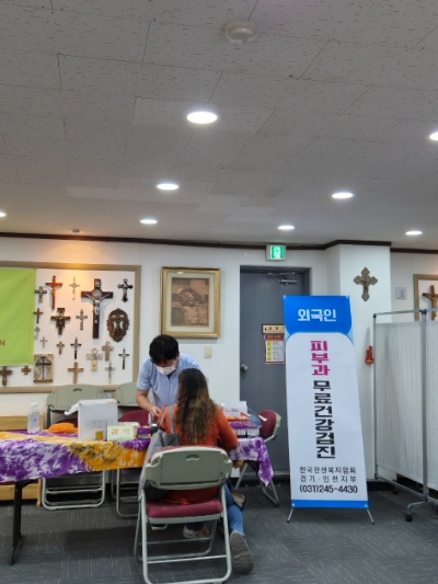 이날 검진에는 외국인 근로자와 다문화가정 주민이 참여했으며, 한센병을 비롯한 각종 피부질환 검진을 진행했다.