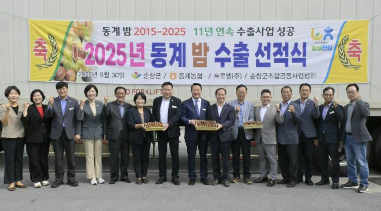 한편, 2025년 동계 밤 수출은 약 250톤, 6억 5,000만 원 규모에 이를 것으로 예상되며, 이번 선적을 계기로 지역 농가와 관계기관의 기대가 더욱 커지고 있다.