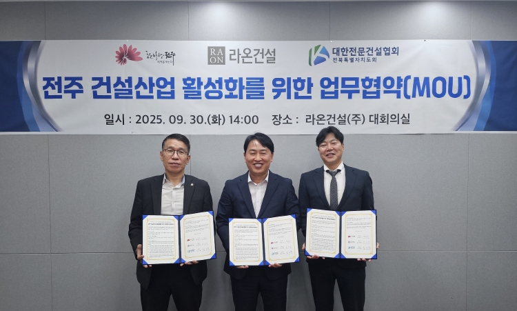 특히 라온건설㈜는 전주지역 내 주택사업이 처음인 만큼 이날 협약을 바탕으로 지역건설산업 활성화에 적극 협조할 것을 약속하기도 했다.
