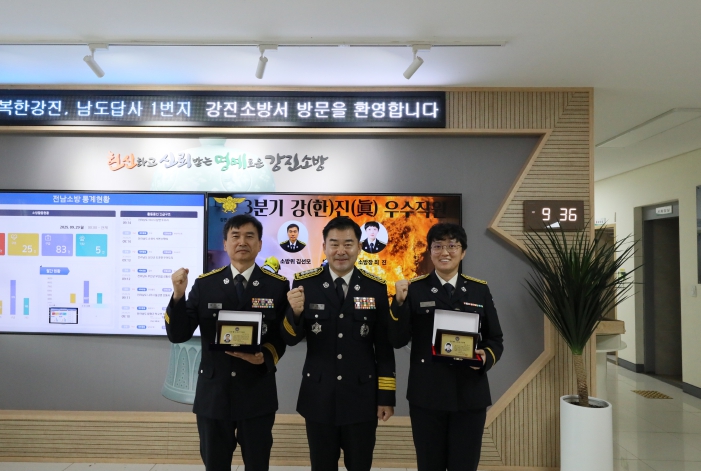 정용인 강진소방서장은 “오늘의 수상은 개인의 영광을 넘어 강진소방서 전체의 자부심”이라며, “앞으로도 군민의 생명과 안전을 최우선으로 하는 조직문화를 만들어가겠다.”라고 말했다.