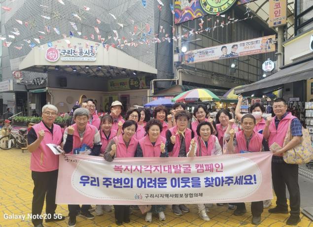 이번 캠페인에는 구리시 8개 동 지역사회 보장협의체 위원 20여 명이 참여해, 유동 인구가 많은 구리시장 인근에서 복지 사각지대 신고 안내, 홍보물 배부, 주민 참여 독려 활동을 펼쳤다. 특히 고립과 단절로 고독사의 위험이 있는 가구를 조기에 발굴하기 위해 고독사 위험 주요 징후를 알리고, 발견 시 적극적인 신고를 당부했다.