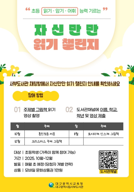 ![]() 초등학생 자신만만 읽기 챌린지 운영 |