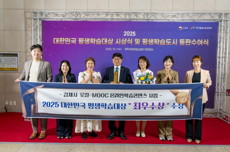 이번 수상은 AI와 디지털 기술의 급속한 발전으로 개인맞춤형 디지털학습이 평생교육의 핵심 패러다임으로 부상하는 가운데, 김제시는 온-오프라인 융합교육을 통한 지역 평생교육기관의 디지털 역량 강화에 선제적으로 나서 지역 우수 강사의 지식을 디지털 자산으로 전환하는 혁신적 접근을 시도해 온 점이 우수하다는 평가를 받고 있다.