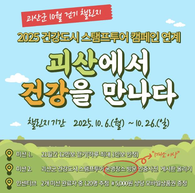 ![]() 괴산군, ‘괴산에서 건강을 만나다’ 걷기 챌린지 운영 |