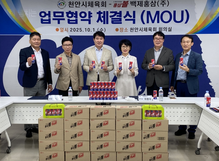 협약에 따라 백제홍삼는 2년 동안 천안시체육회에서 개최하는 각종 대회에 삼대인 홍삼볼 등 자사 제품을 후원할 예정이다.