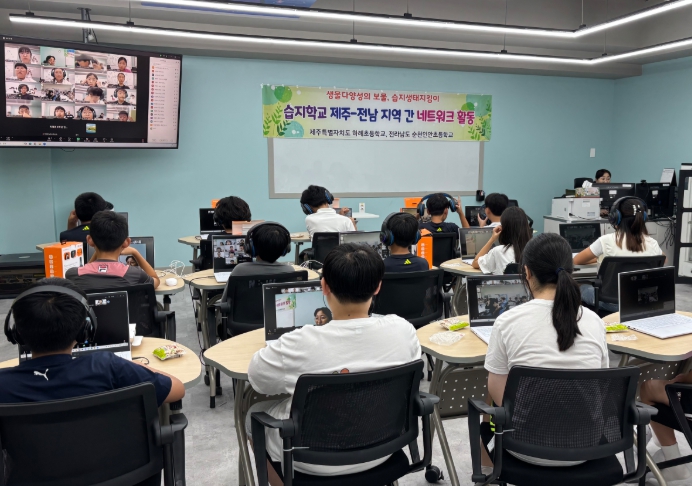 5, 6학년 학생들이 참여한 이번 공동수업은 한국습지학교 네트워크를 기반으로 2024년부터 2년간 이어지고 있는 제주-전남 간 생태교육 교류 활동으로 마련됐다.