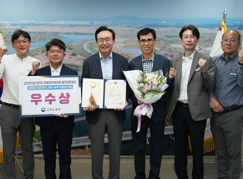 ![]() 나주시가 고용노동부에서 주관하는 ‘2025 전국 지방자치단체 일자리대상’ 공시제 부문에서 우수상을 받았다. (사진 제공-나주시) |