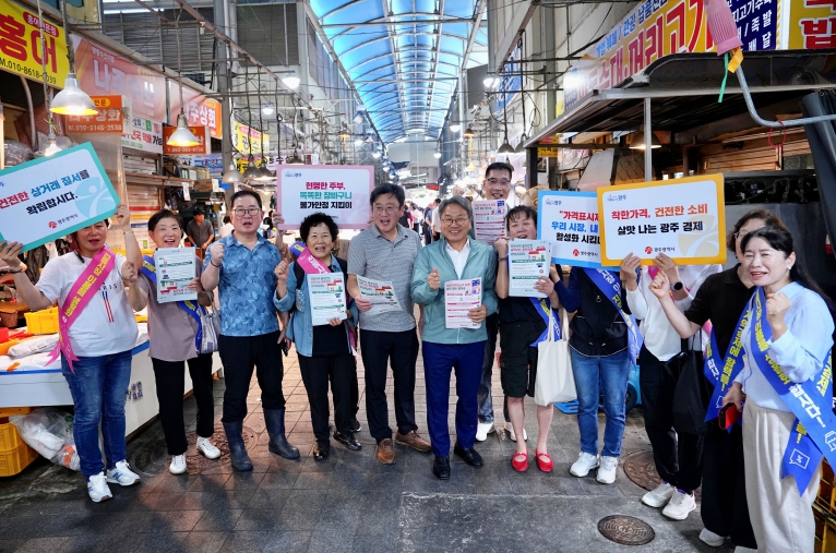 강 시장은 이날 오전 서구 양동전통시장을 찾아 장바구니 물가를 세심하게 점검했다. 강 시장은 지속되는 경기침체와 소비심리 위축으로 시름이 깊은 상인들을 만나 “상인들의 어려움을 덜어드리는 것이 최우선”이라며 현장 목소리를 들었다.
