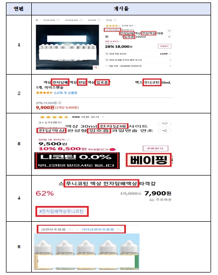 안전성이 검증되지 않은 ‘무니코틴 표방 액상 흡입제품’에 대한 국민 건강 피해 우려로 인해, 식약처는 ▲ 무니코틴을 표방하면서 ▲ 담배와 유사한 형태로 흡입하는 제품(액상단독 또는 기기 일체형)인 ‘무니코틴 표방 액상 흡입제품’을 약사법상 의약외품 오인 우려 광고로 보아 적극 점검하고 있다.