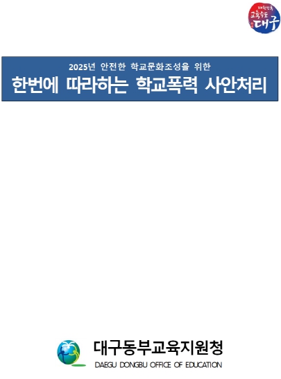 ![]() 대구동부교육지원청, ‘한번에 따라하는 학교폭력 사안처리’ 자료집 배부(자료집 표지) |