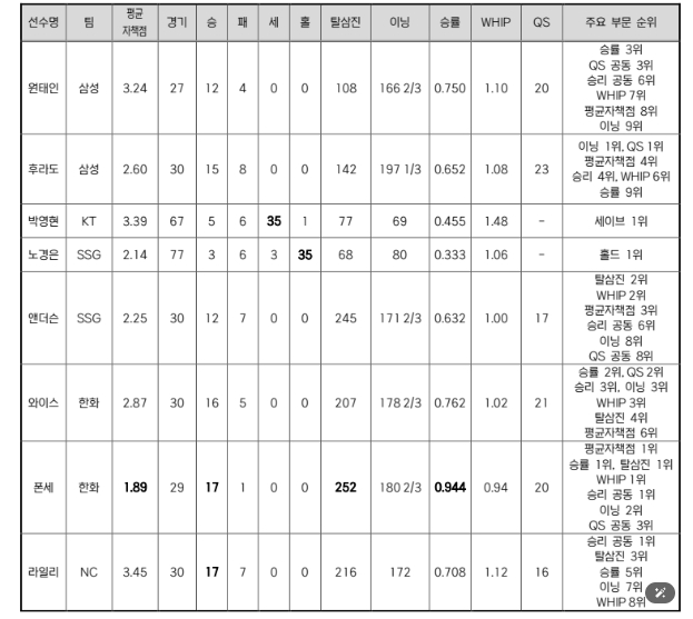 ![]() 2025 KBO MVP 후보(투수-8명) |