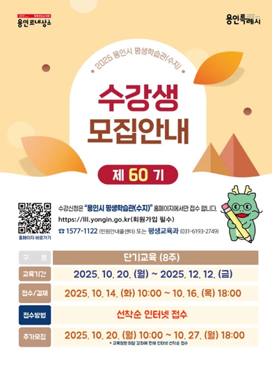 ![]() 용인특례시 평생학습관 '제60기 단기교육' 안내 포스터 |