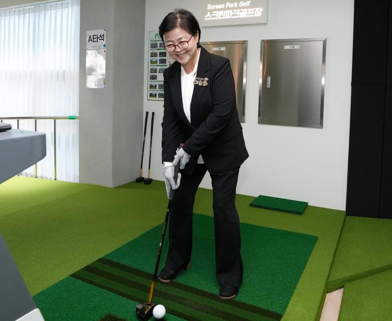 ![]() 이순희 강북구청장이 지난 10월 1일 열린 스크린 파크골프장 개장식에서 파크골프 시타를 하고 있다. |