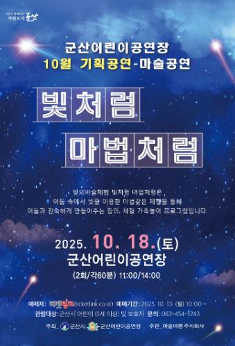 ![]() 군산시 환상적인 빛과 과학의 향연, 체험형 마술공연『빛처럼 마법처럼』 |