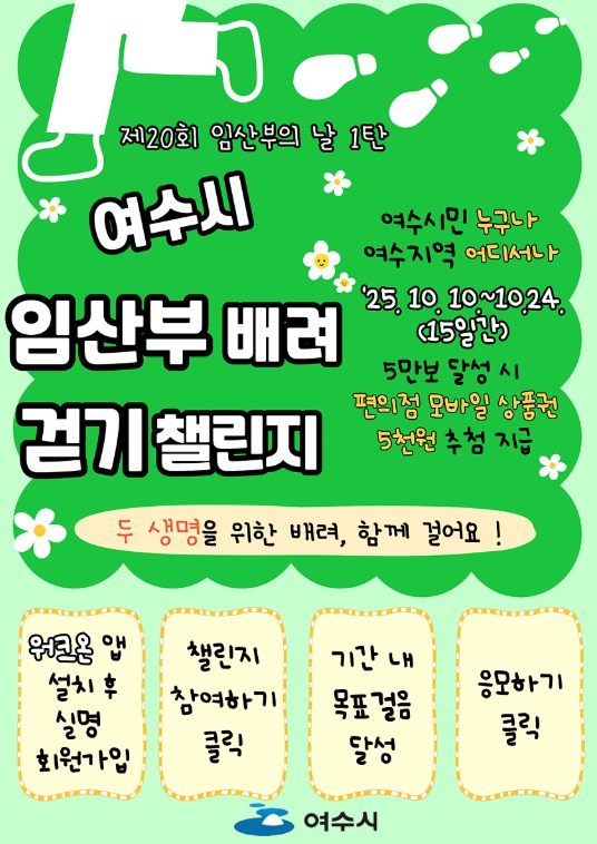 ![]() 여수시 ‘임산부 배려 걷기 챌린지’ 홍보물 |