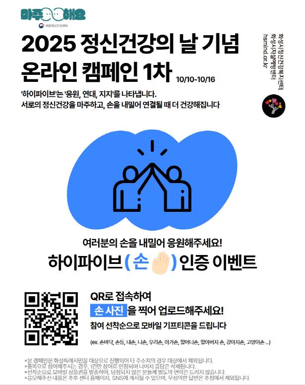 ![]() 화성특례시 2025 정신건강의날 기념 1차 온라인 캠페인 포스터 |