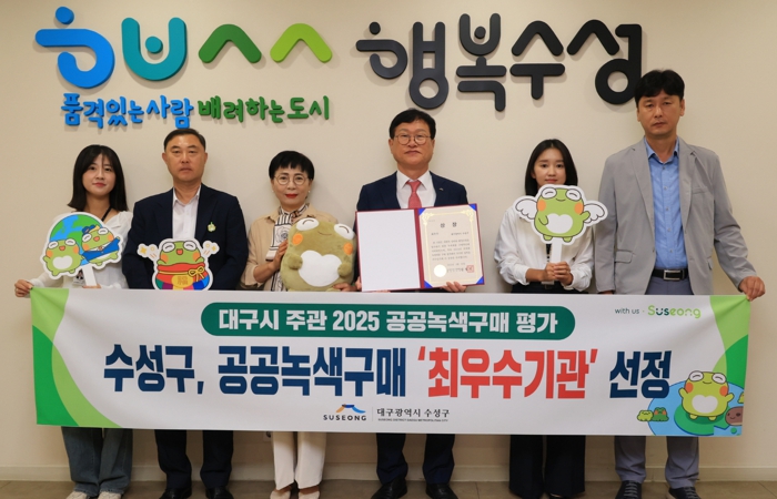 김대권 수성구청장은 “이번 최우수기관 선정은 수성구가 탄소중립 실현을 향한 확고한 의지를 보여준 성과”라며 “앞으로도 녹색제품 구매를 지속적으로 확대해 환경친화적 행정과 지속 가능한 미래를 선도해 나가겠다”고 말했다.