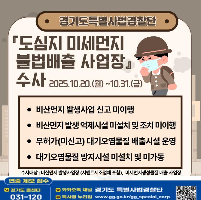 이번 수사는 미세먼지 농도가 증가하는 겨울철을 앞두고 건설공사현장 및 시멘트 제조업체, 대기배출시설 등에서의 불법적인 미세먼지 배출 행위를 사전 차단하기 위한 선제적 조치다. 미세먼지는 폐 깊숙이 침투해 호흡기와 심혈관 질환을 유발할 수 있는 1급 발암물질로 특히 어린이, 노약자는 장기간 노출될 경우 폐 기능 저하, 기관지염, 심근경색, 뇌졸중 위험 증가 등 심각한 건강 피해를 입을 수 있다.