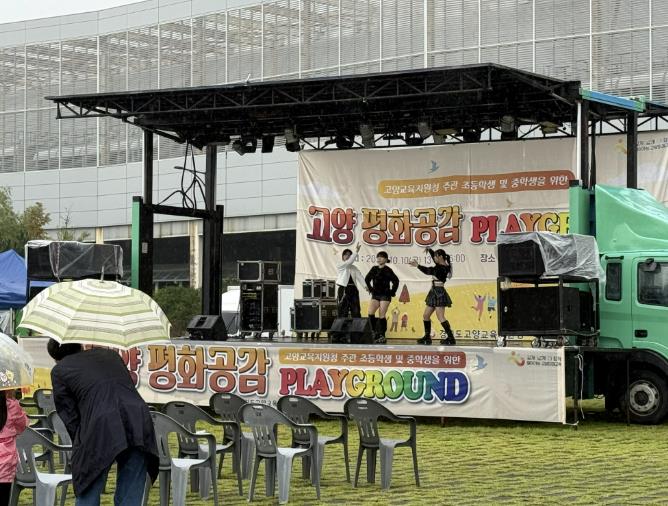 ![]() 10월 10일 오후, 킨텍스야외공연장에서 진행된 ‘고양 평화공감 PLAYGROUND’ 통일교육 행사에 참여한 고양 관내 초•중등 학생들이 공연 및 체험부스 활동에 몰입하고 있는 모습 |
