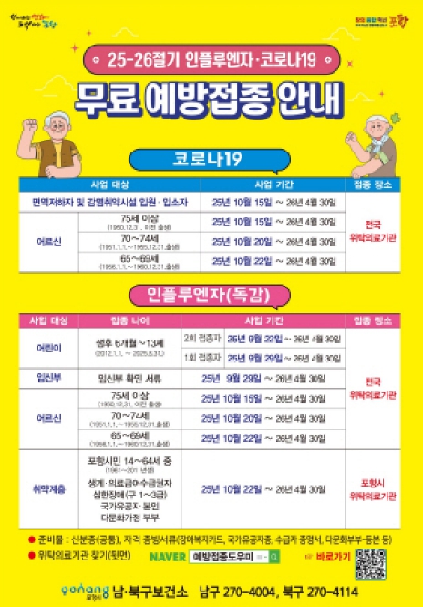 ![]() 25-26절기 인플로엔자·코로나19 무료 예방접종 안내문. |