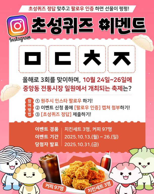 ![]() 원주시 인스타그램 초성퀴즈 이벤트 안내문 |