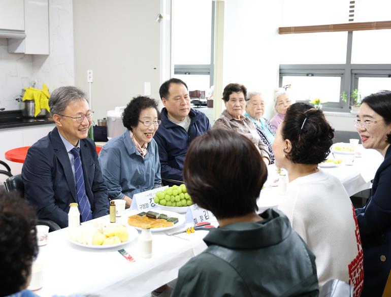 오류1동 주민센터에서는 지역 봉사자들과 간담회를 갖고, 현장의 애로사항과 건의사항을 청취했다. 이어 오류골경로당을 찾아 어르신들과 인사하며 복지 정책에 대한 의견을 듣고, 자치회관 난타교실도 참관해 수강생들과 소통했다.
