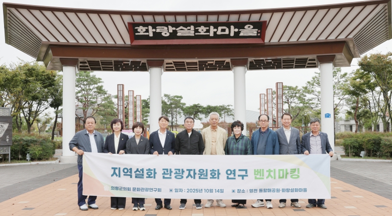 이번 활동은 신화·전설·민담·역사 등 지역의 다양한 서사를 활용한 창의적 관광 자원화 사례를 직접 조사하고, 의령만의 문화관광 발전 전략을 마련하기 위한 목적으로 기획됐다. 의령군의회 의원 전원이 참여하는 문화관광연구회는 이날 하루 동안 두 곳의 특색 있는 설화 기반 관광지를 집중적으로 견학했다. 돌할매 공원은 마을 당산신 돌할머니 설화를 바탕으로 조성된 테마공원이다. 화랑설화마을은 신라 화랑정신을 현대적으로 재해석한 복합문화공간으로, 김유신 장군의 일대기를 재현했다.