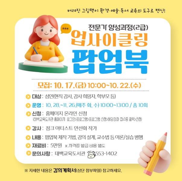 ![]() ‘2025년 업사이클링 팝업북 강사 자격과정’ 안내문 |