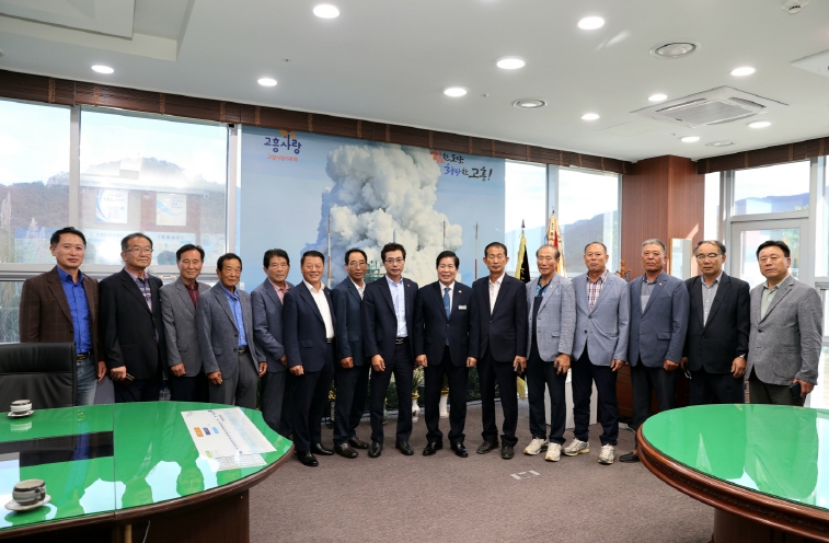 ![]() 공영민 고흥군수, 이장단 협의회와 소통간담회 가져... - 왼쪽 8번째부터 류병석 고흥군 이장단 협의회장, 공영민 고흥군수 |
