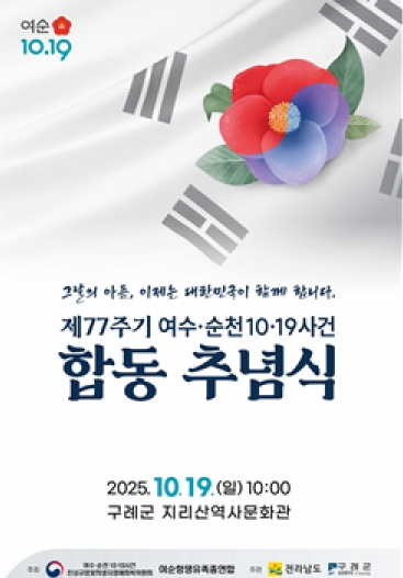 ![]() 여순사건 제77주기 정부주최 합동추념식 구례군에서 개최-합동추념식 포스터 |