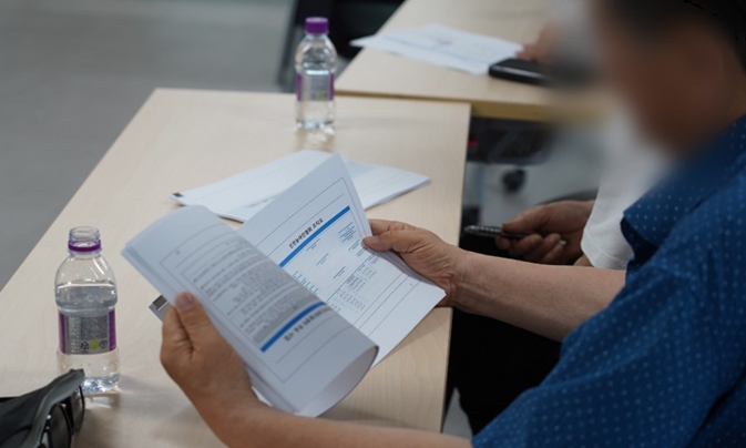 ![]() 한 청각언어장애인이 지난 6월 인천시사회서비스원 대회의실에서 열린 ‘인천시 청각언어장애인복지관 운영방안 연구’ 중간보고에서 발표 자료를 읽고 있다. |
