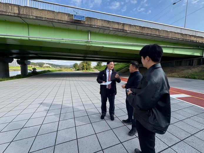 이번 점검은 공사 완료를 앞두고 주민 이용 현황을 직접 살피며, 예산 부족으로 추진이 미뤄진 야간 조명 및 경관 연출 개선사업의 구체적 추진 방향을 논의하기 위해 마련됐다.