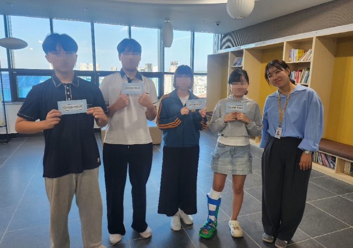 ![]() 청소년상담복지센터를 통해 무안경찰서 후원금을 전달받은 청소년들 |