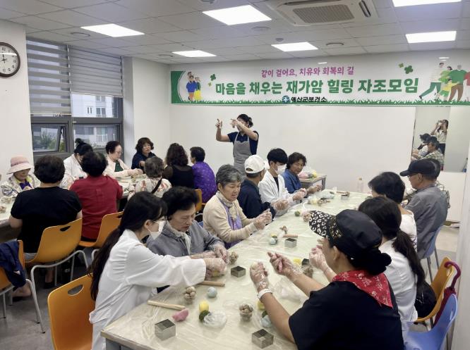 이번 자조모임은 암 치료 후 심리적 불안과 사회적 고립을 겪는 대상자들의 정서 회복을 돕기 위해 마련됐으며, 스트레스·우울 검사, 푸드테라피(떡 공예), 심리지지 교육, 말초신경병증 이해, 치유의숲(힐링 포레스트) 체험 등으로 구성됐다.