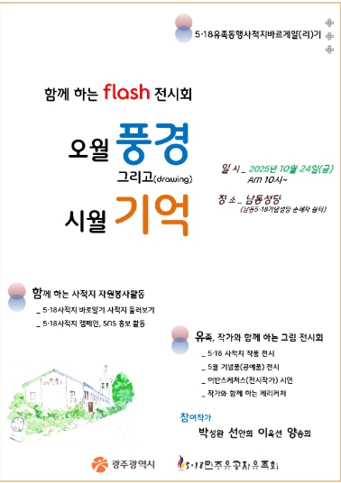 이번 전시회는 오전 10시부터 3시간 동안 진행되며 5·18사적지를 주제로 한 미술작품과 공예품이 전시된다.