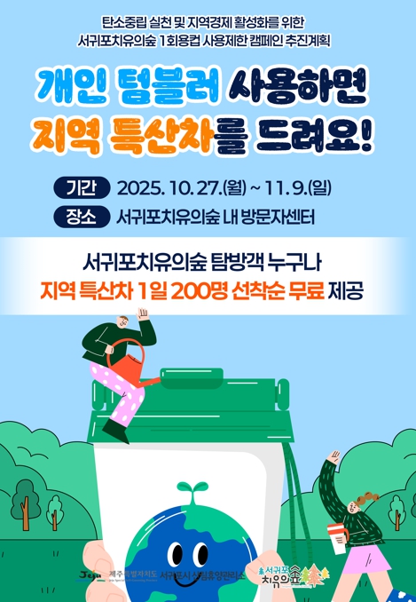 서귀포시 산림휴양관리소 관계자는 “이번 캠페인을 통해 탐방객들의 친환경 실천 의식을 높이고, 지역 특산품 홍보와 함께 지역경제 활성화에도 도움이 되기를 기대한다”라며, “앞으로도 지역 자원을 적극 활용하여, 민·관이 함께하는 탄소중립 정책을 계속 확대해 나가겠다”라고 밝혔다.