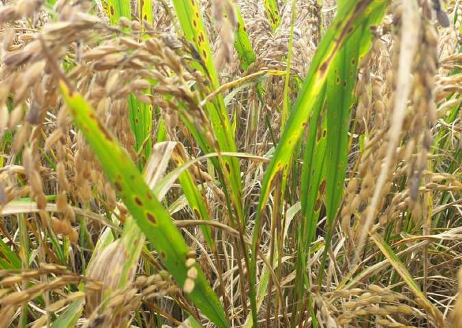 ‘벼 깨씨무늬병’은 벼 잎에 깨씨 모양의 암갈색 병반(病斑)이 생기고, 심한 경우 벼알에도 반점이 나타나 품질 저하와 수량 감소를 초래하는 병해로 알려져 있다.