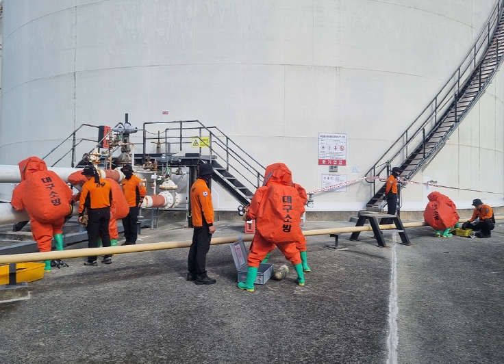 또한, 대량 위험물 누출 사고를 대비한 훈련도 함께 실시됐다. 대한송유관공사 영남지사에서 실제 발생할 수 있는 위험물 누출 사고를 시뮬레이션하고, 위험물 누출 배관 차단 및 흡수 조치, 현장 관리 등의 실습을 진행했다.