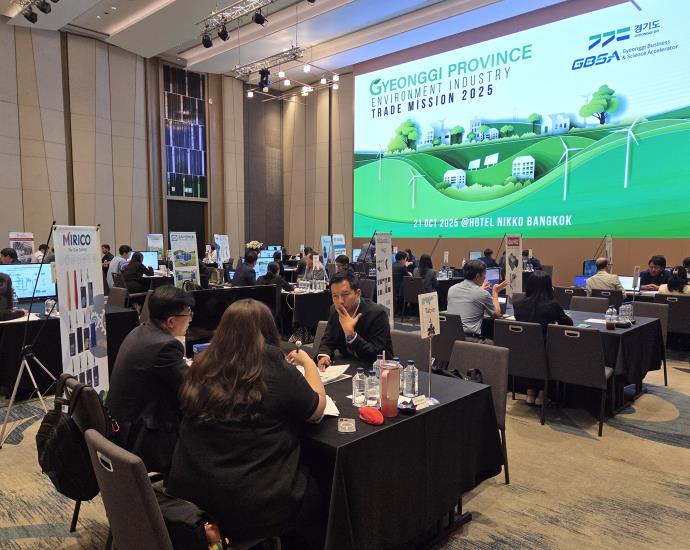 수질 정화·녹조 예방 기술을 개발하는 수원시 소재 코리아엔텍(주) 관계자는 “이번 경기도 통상촉진단 지원 사업으로 만난 바이어는 방콕시청에 납품이 가능한 기업이며 향후 1년 이내에 방콕시청에 납품하는 것을 목표로 상호 업무협약을 체결했다”며 “협약을 계기로 동남아 환경시장 진출을 본격화해 지속적인 교류와 후속성과를 이어가겠다”고 말했다.