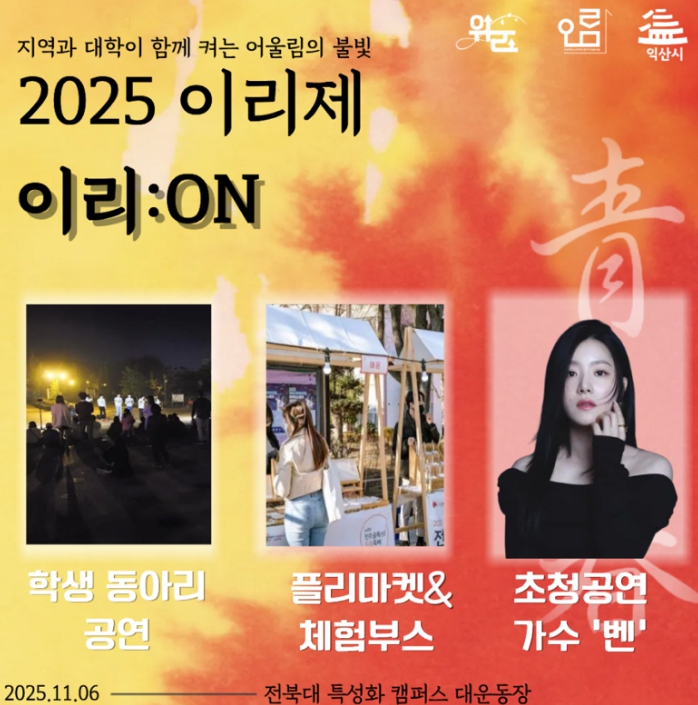 익산시는 오는 11월 6일 전북대 특성화캠퍼스에서 '2025 이리제, 이리:온(ON)' 축제가 개최된다고 29일 밝혔다.
