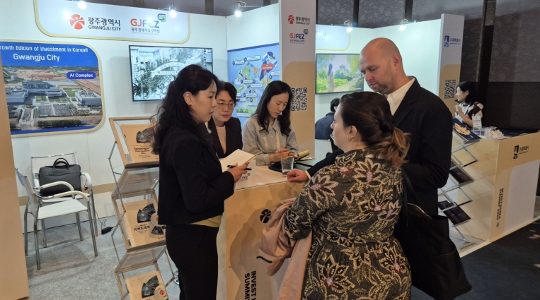 홍보관에서는 ▲인공지능(AI) 융복합지구 ▲미래형자동차산업지구 ▲스마트에너지산업지구 등 광주의 핵심 전략산업 거점을 중심으로 우수한 투자환경과 인프라를 소개한다. 또 광주시 AI 2단계 사업인 ‘AX 실증밸리 조성’과 광주 AI기업 성장 사례를 담은 영상을 상영한다.