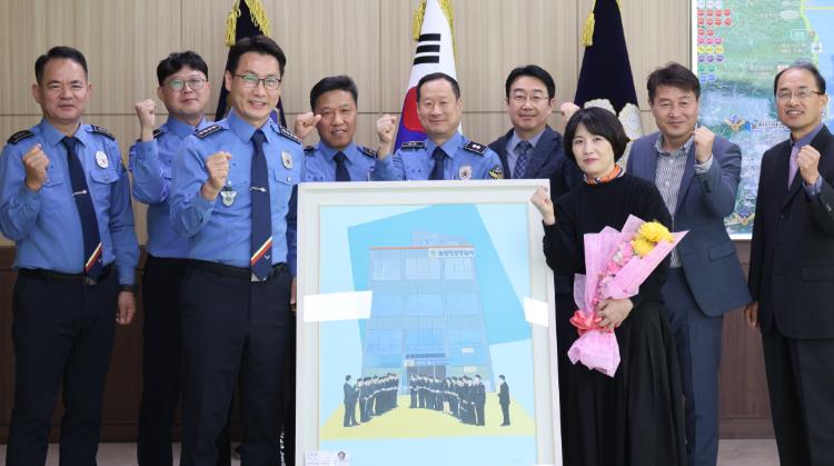 기증식에는 배병학 서장을 비롯해 각 과장 및 직원, 김승현 작가 등이 참석했으며, 작품 기증의 의미와 제작 배경을 공유하는 사전 환담회를 시작으로 작품 전달식과 감사패 수여 순으로 진행됐다.