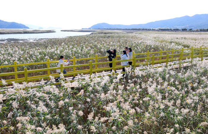 ![]() 제10회 강진만 춤추는 갈대축제가 열린 가운데 강진만 갈대밭을 찾은 관광객들이 가을의 정취를 맘껏 느끼고 있다. |