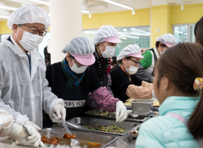 ![]() 초등학교 배식 봉사하는 김석준 교육감 |