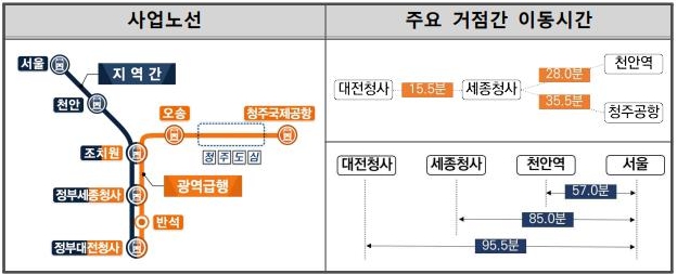 총사업비는 5조1천135억원이며, 철도에 투입되는 차량은 수도권 광역급행철도(GTX)와 같은 EMU-180 차량이다.